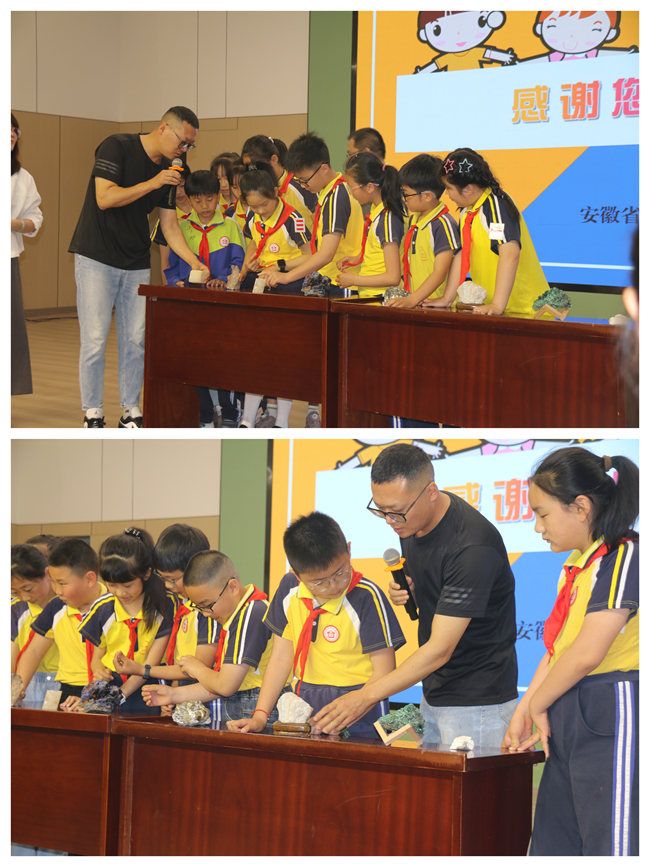 活动现场,我队高级工程师王阳以《走进新奇的矿物世界》为题,结合图文与实物,向同学们讲解了矿物形成原理、地球资源分布及地质环境保护等知识。“什么是矿物?矿物有什么作用?……”一系列有趣的知识带领着学生们走进矿物的世界。